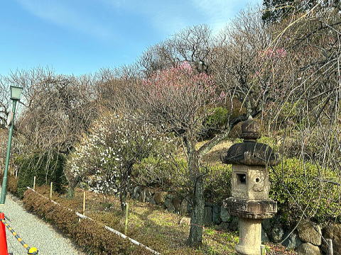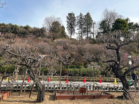 庭園の斜面を中心に、約30種類の梅の花を楽しめます。